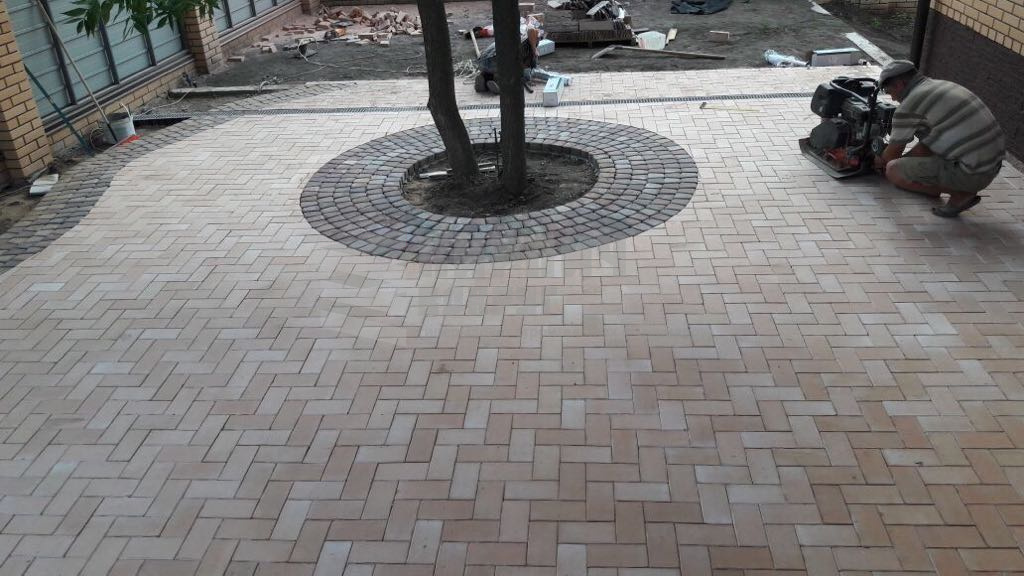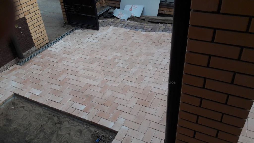 Клинкерная брусчатка может применяться, как для укладки на песчаную основу с узкими швами, заполненными песком, так и для жесткой укладки (укладка на бетонную основу с заполнением швов между кирпичами бетонным раствором).