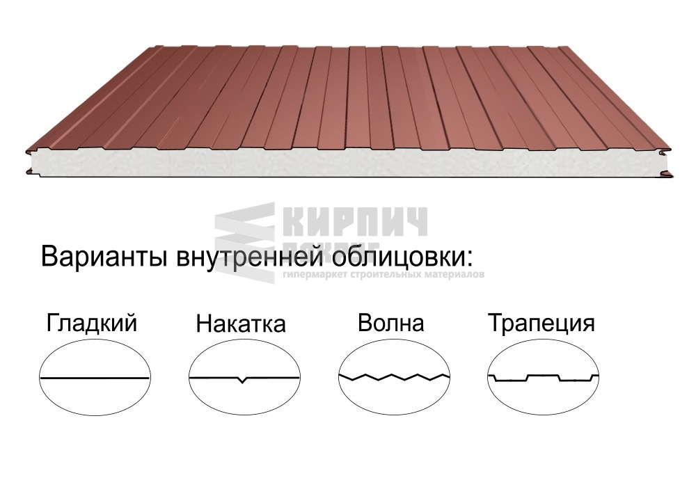 В интернет-магазине "Кирпич Вокруг" Вы можете купить Стеновая трёхслойная сэндвич-панель трапеция 50мм 1190мм с видимым креплением пенополиизоцианурат Полиэстер Металл Профиль в Краснодаре, а наши специалисты готовы вам помочь с выбором по адресу: , или оказать консультацию по телефону: .